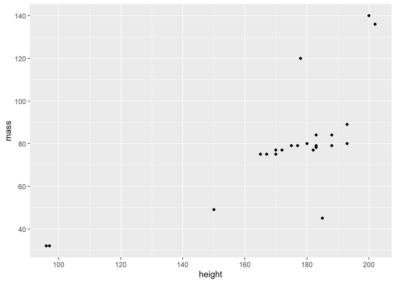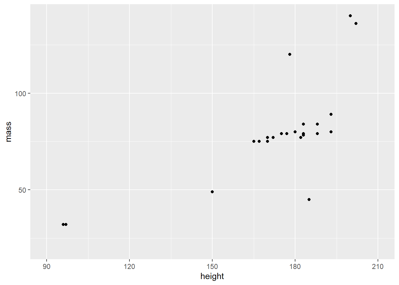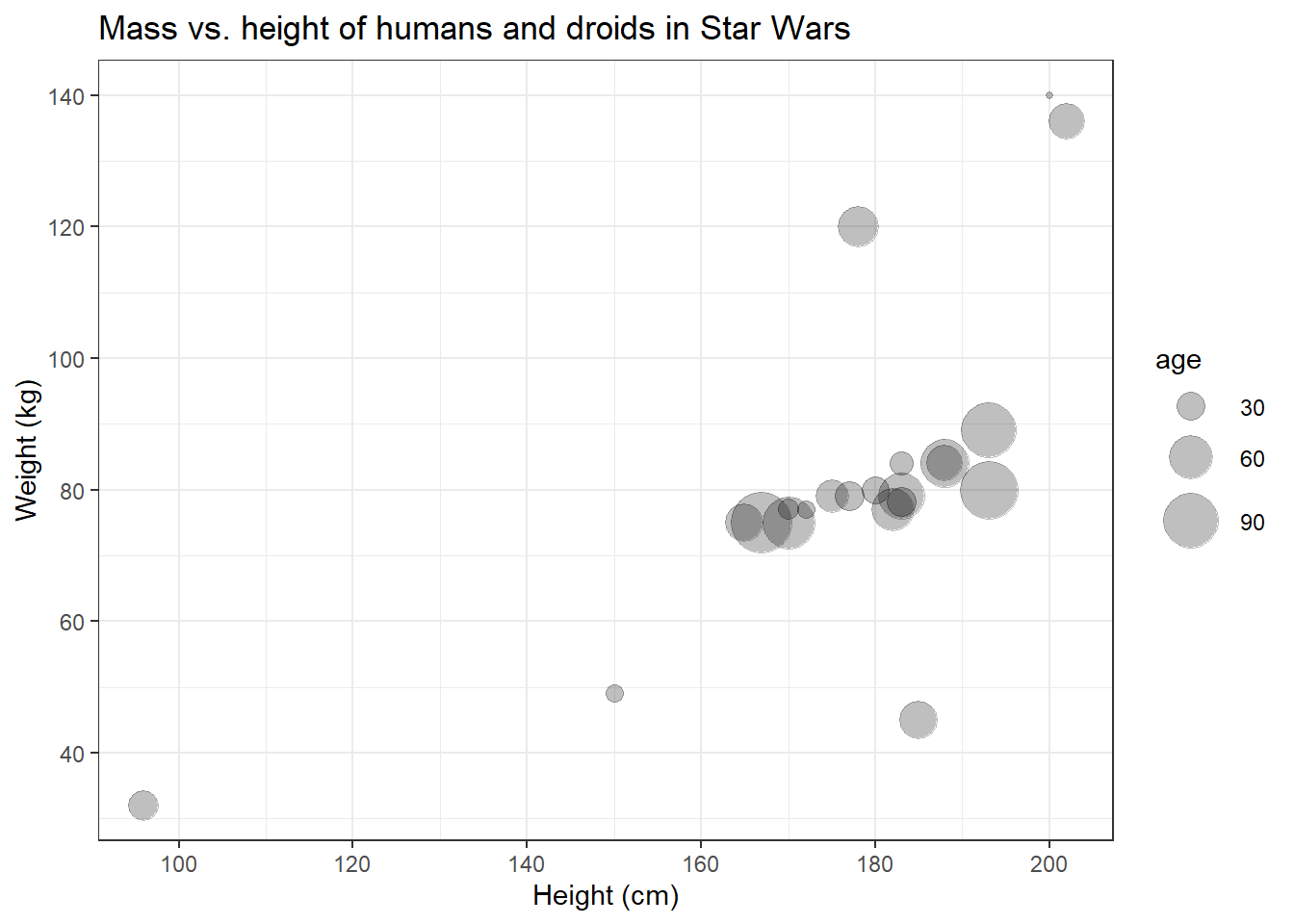 title = "Mass vs. height of humans and droids in Star Wars",