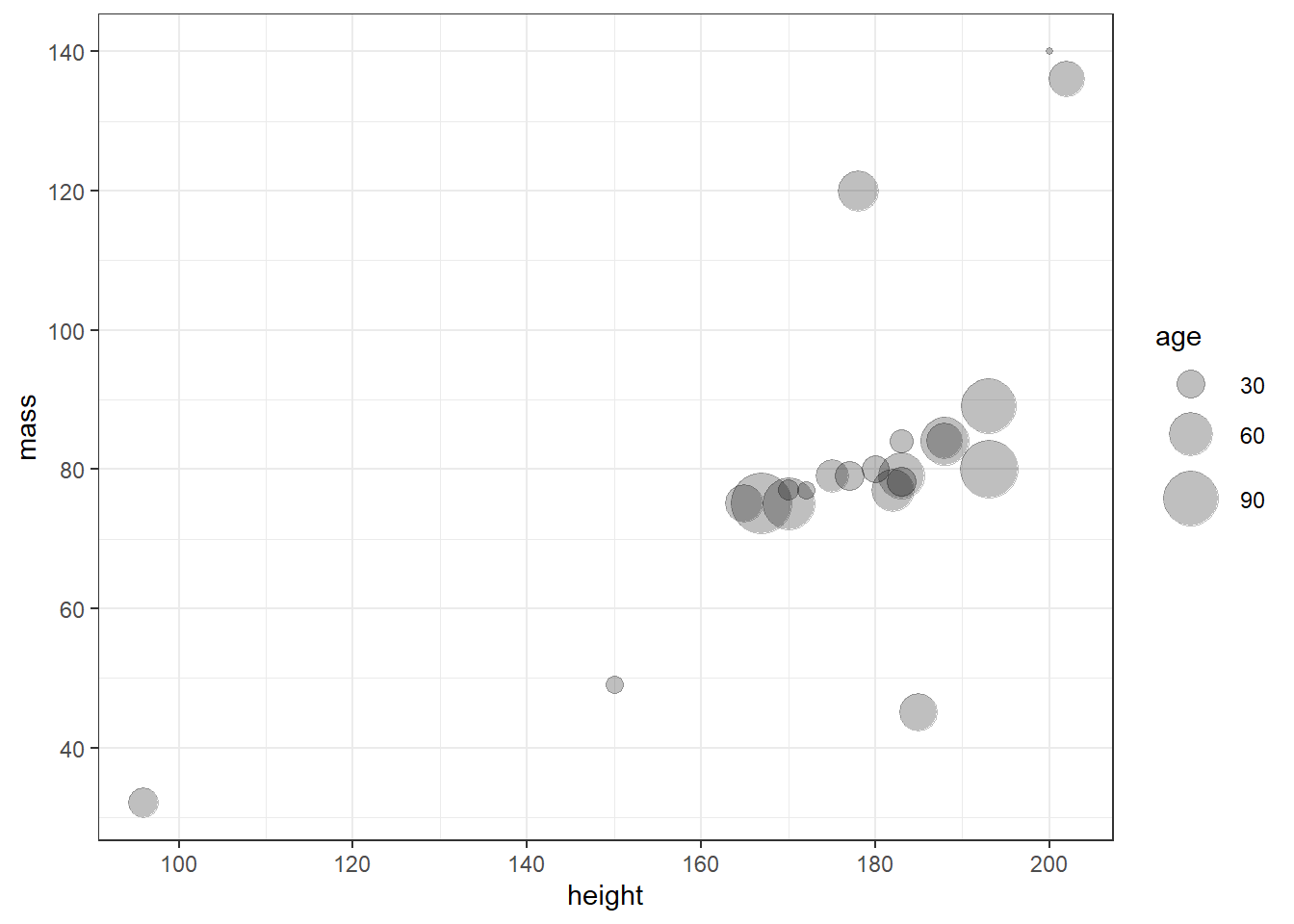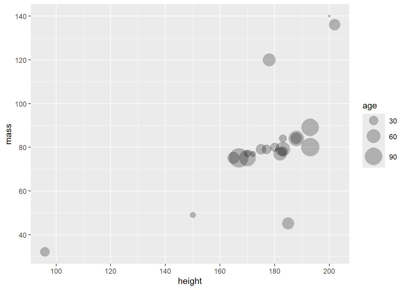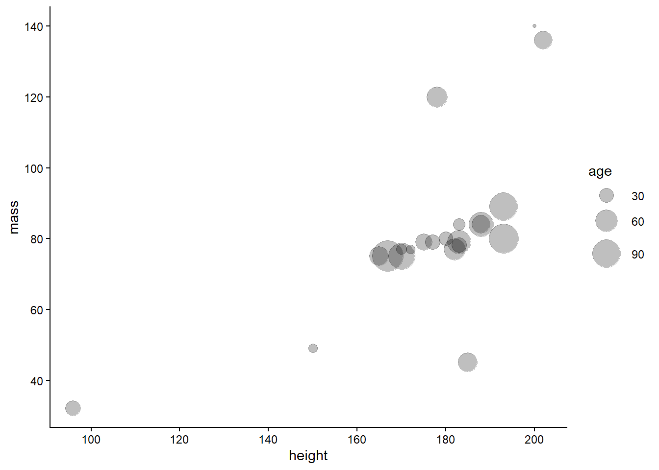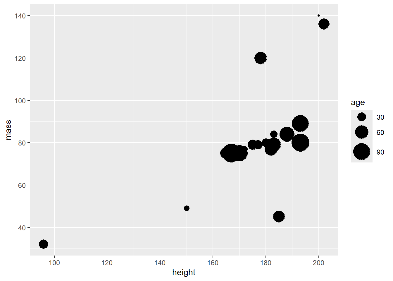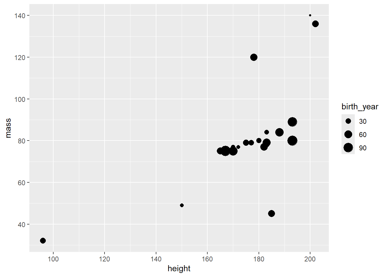 ggplot(aes(x = height, y = mass, size = birth_year, fill = species)) +