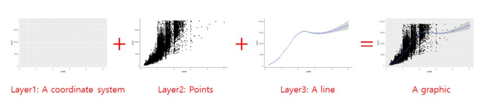 | Image: The logic of adding layer by layer in ggplot (Source: R @ Ewah 2020): |