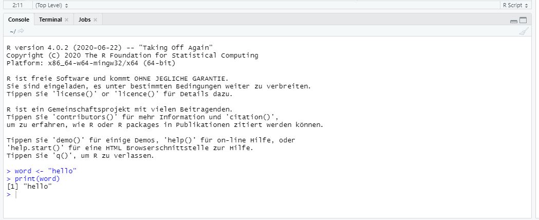 R should now execute exactly those lines of codes that you marked (hereby creating the object word). If you haven’t marked any specific code, all lines of code will be executed.